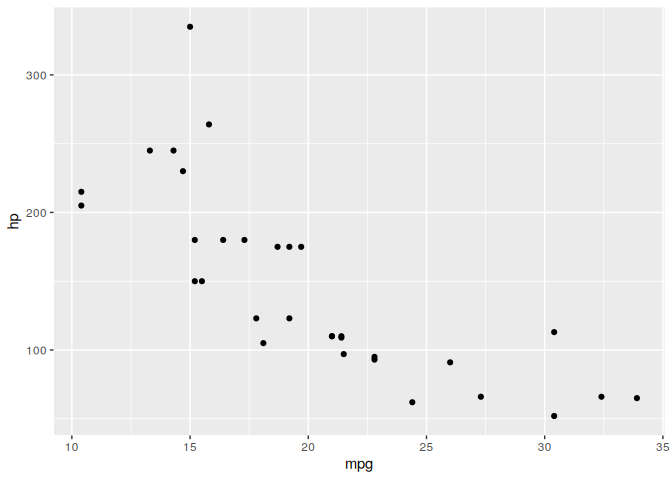 <- ggplot(data = mtcars) + geom_point(aes(y = hp, x = mpgg))