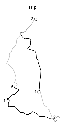 plot(st_geometry(mytrip), col = c("black", "grey"), lwd = 2, main = "Trip")