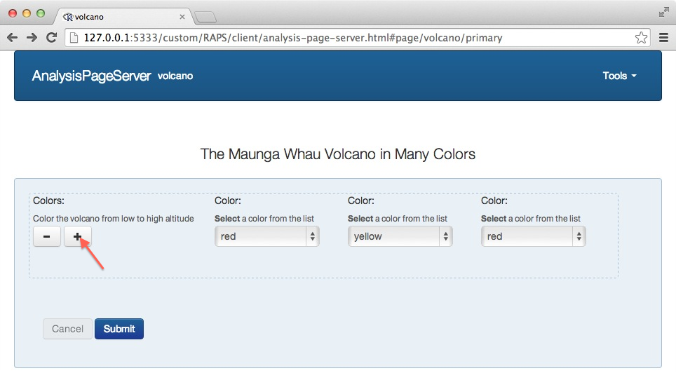 Click on "volcano" (either on the main landing page or in the "Tools" menu) to go to its "primary parameter area".